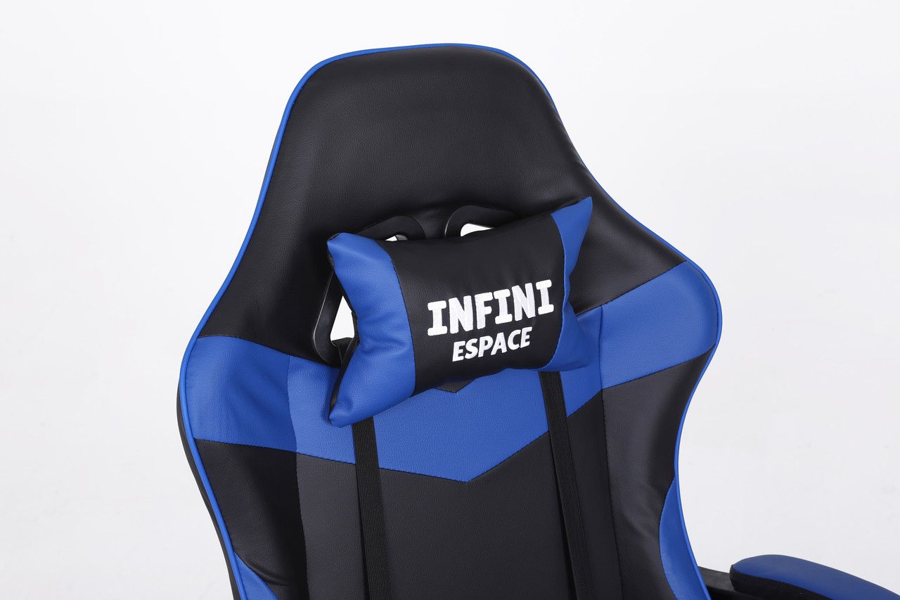 Ігрові крісла INFINI ESPACE — це комп'ютерні крісла з плавно регульованою спинкою та подушками. Бренд INFINI характеризується високою якістю матеріалів, які застосовуються для виробництва цих часто енергійно і довго використовуваних крісел. Грати годинами на цьому кріслі – справжнє задоволення, а додаткові подушки для підтримки голови та попереку лише підсилюють відчуття високого комфорту. Ідеально підходить для геймерів, а також для людей, які проводять багато годин за комп'ютером або письмовим столом.