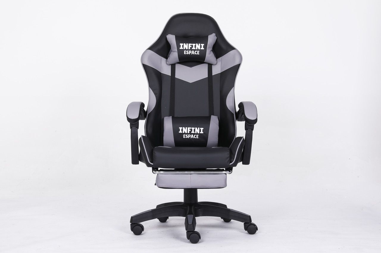 Ігрові крісла INFINI ESPACE — це комп'ютерні крісла з плавно регульованою спинкою та подушками. Бренд INFINI характеризується високою якістю матеріалів, які застосовуються для виробництва цих часто енергійно і довго використовуваних крісел. Грати годинами на цьому кріслі – справжнє задоволення, а додаткові подушки для підтримки голови та попереку лише підсилюють відчуття високого комфорту. Ідеально підходить для геймерів, а також для людей, які проводять багато годин за комп'ютером або письмовим столом.