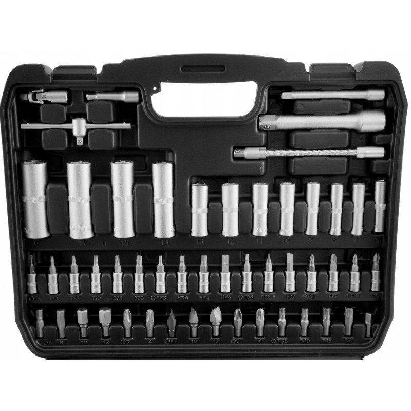 Якісний набір торцевих ключів відмінно підійде як для професійної майстерні, так і для домашнього гаража. Набір складається з 94 елементів різного розміру, що дозволить якісно виконати багато різних робіт. Торцеві ключі виготовлені з міцної хромованадієвої інструментальної сталі CR-V, завдяки чому вони надовго збережуть свій первинний зовнішній вигляд. Набір дозволяє працювати з великими навантаженнями і точністю, дозволяє виконувати багато сервісних робіт, пов'язаних з відкручуванням і закручуванням різьбових з'єднань різних номінальних розмірів.