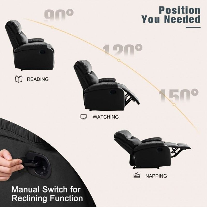 Крісло виготовлене з м’якої приємної на дотик екошкіри, що додає виробу елегантного та преміального вигляду. Завдяки можливості розкладатися, крісло дозволяє легко змінювати позицію із сидячої на напівлежачу, забезпечуючи повний комфорт під час відпочинку.
