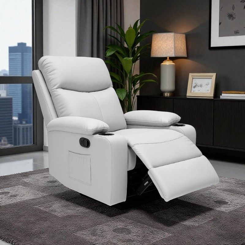 Крісло виготовлене з м’якої приємної на дотик екошкіри, що додає виробу елегантного та преміального вигляду. Завдяки можливості розкладатися, крісло дозволяє легко змінювати позицію із сидячої на напівлежачу, забезпечуючи повний комфорт під час відпочинку.