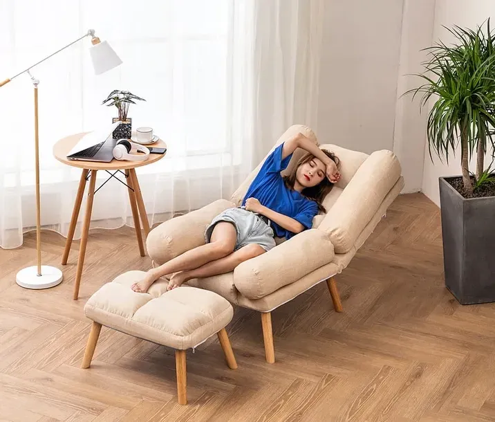Розкладне відпочинкове крісло Uszak DIOR з підставкою для ніг | Бежевий