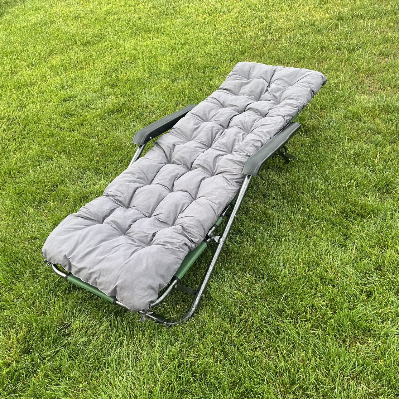 Садовий шезлонг тканинний з матрацом RahheGarden Linosa Зелений + Сірий