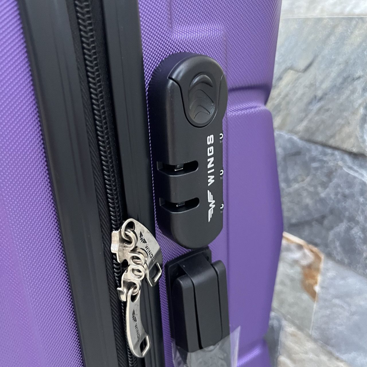 Розкішний чемодан від відомої компанії WINGS для найвимогливіших клієнтів. Сучасна і легка модель c дворівневою телескопічною ручкою виконана з міцного пластику ABS Plus зі стійкою до подряпин поверхнею. Зовнішні ручки валізи гумові та приємні на дотик. Кодовий замок запобігає проникненню небажаних гостей. У валізу вмонтована міцна дюралюмінієва рама. Кожна з валіз обладнана чотирма поворотними колесами, що забезпечують стабільність і легкість руху на будь-якій поверхні.