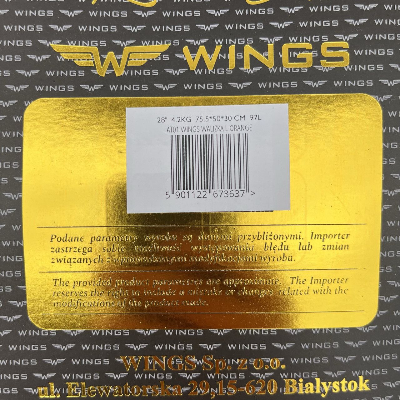 Розкішна валіза від відомої компанії WINGS, розроблена для найвибагливіших клієнтів. Сучасна легка модель, виготовлена з дуже міцного та стійкого до подряпин матеріалу ABS Plus, з дворівневою телескопічною ручкою і кодовим замком. Має дві вмонтовані, приємні на дотик, гумові ручки для вертикального і горизонтального транспортування багажу. Міцний дюралюмінієвий каркас, вбудований у валізу. Оснащена чотирма поворотними гумовими колесами, які забезпечують стабільність і легкість руху в будь-якому напрямку. Всередині валізи підкладка з якісної брендової тканини, простір розділено перегородкою на блискавці в два відділи, один з яких має ремені фіксації багажу.
