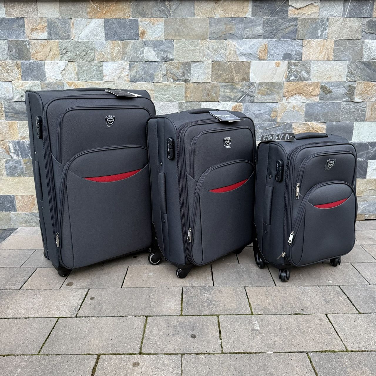 Валіза цієї моделі для надійності оснащена чотирьма великими міцними поліуретановими колесами на металевих підшипниках. Це дозволяє власнику пересувати валізу практично по будь-якій поверхні без ризику поломки коліс і без особливих зусиль.
