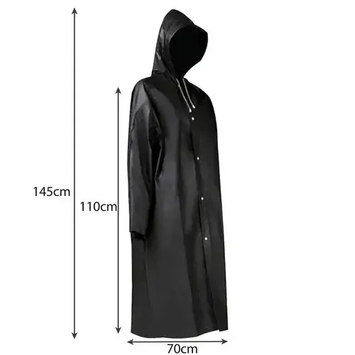 ДЛИННЫЙ ПЛАЩ + КАПЮШОН - плащ очень длинный и дополнительно имеет капюшон с завязками на конце. Идеальная защита от дождя.