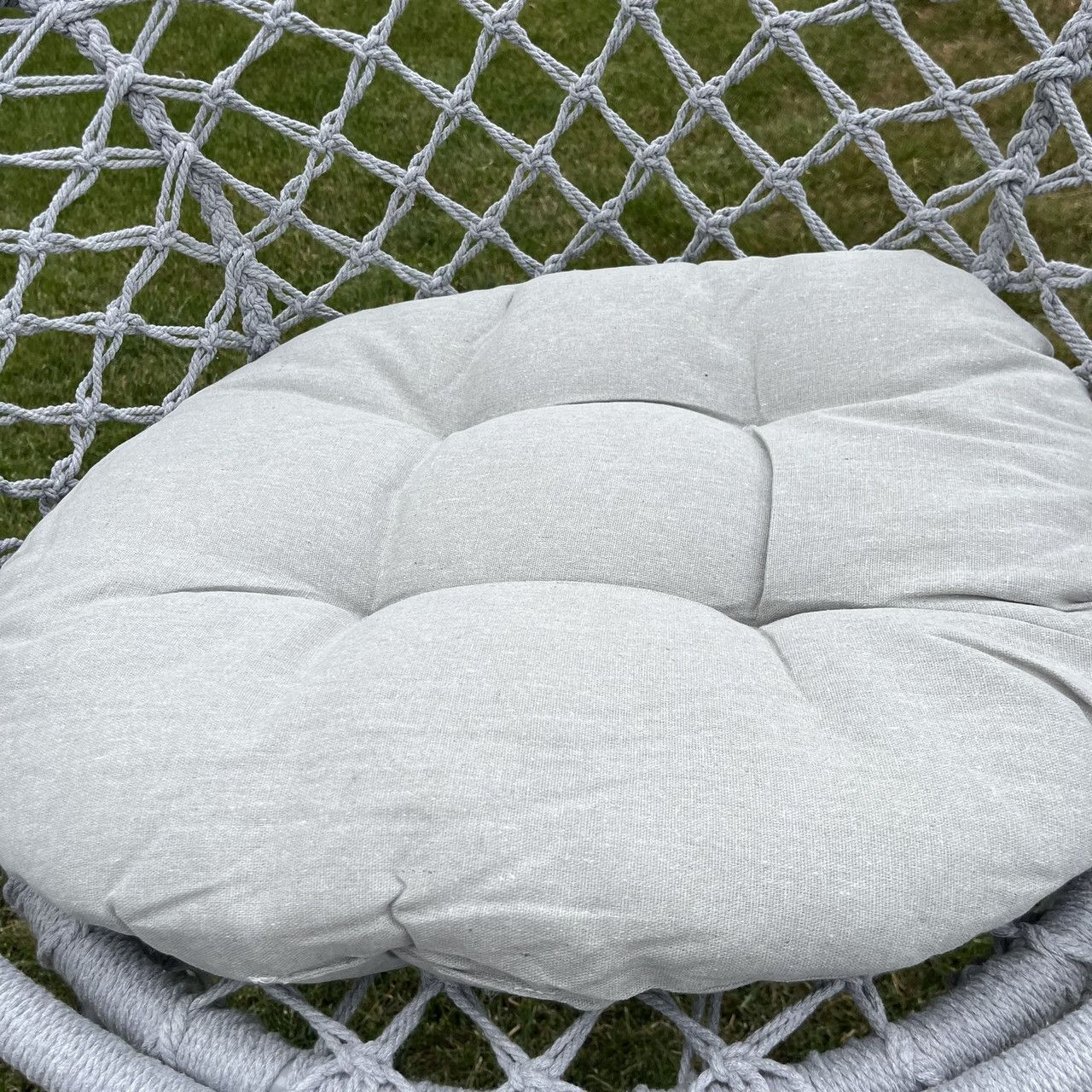 Уникальное тканое кресло доступно в двух цветах: бежевом и сером. К нему прилагается мягкая и удобная подушка, которую можно использовать на сиденье или на спинке, в зависимости от ваших предпочтений.