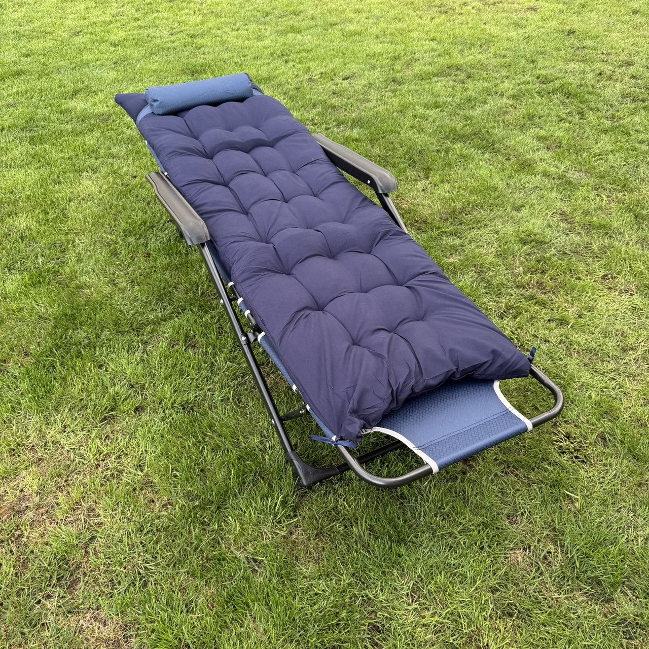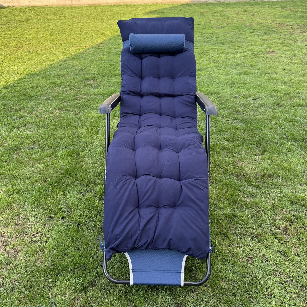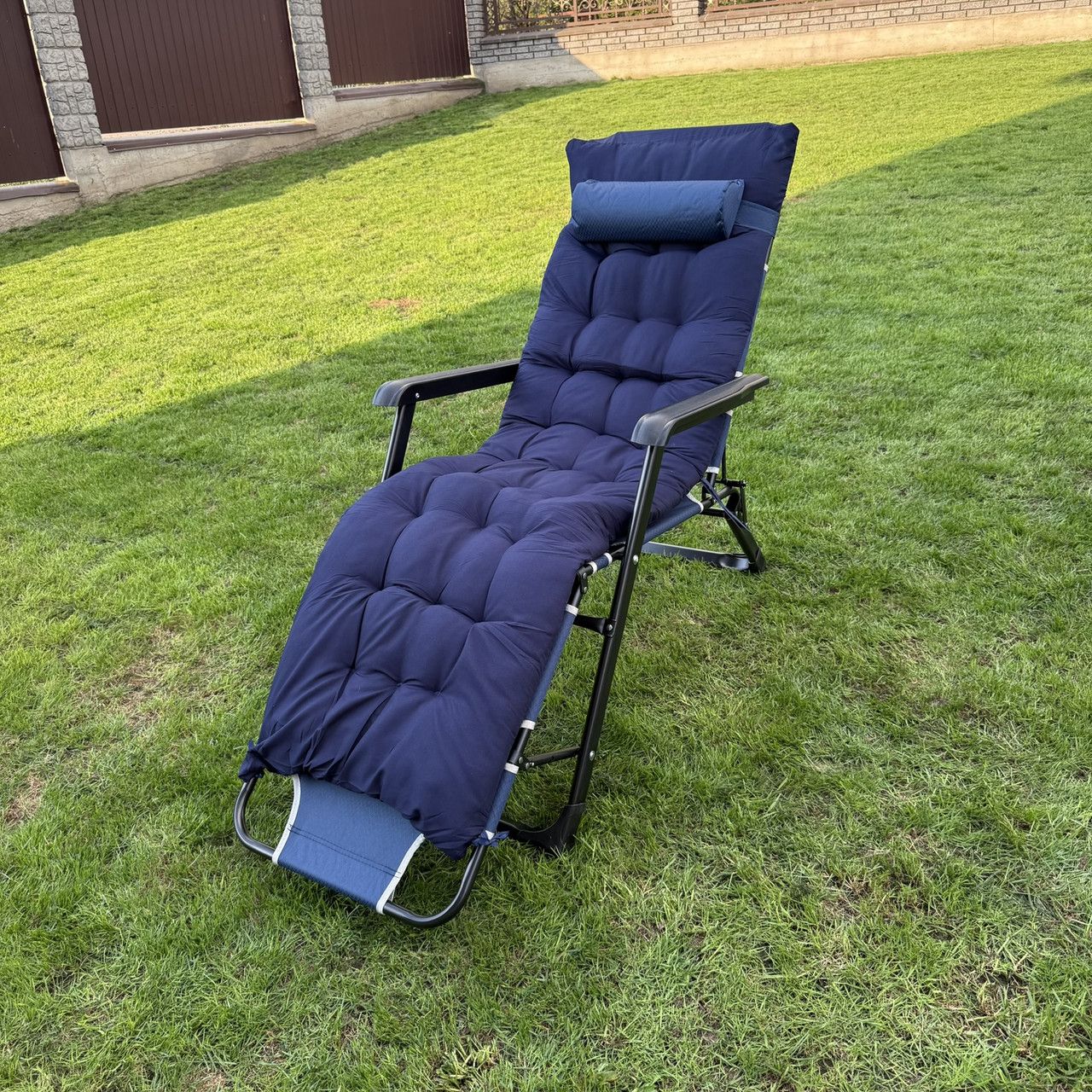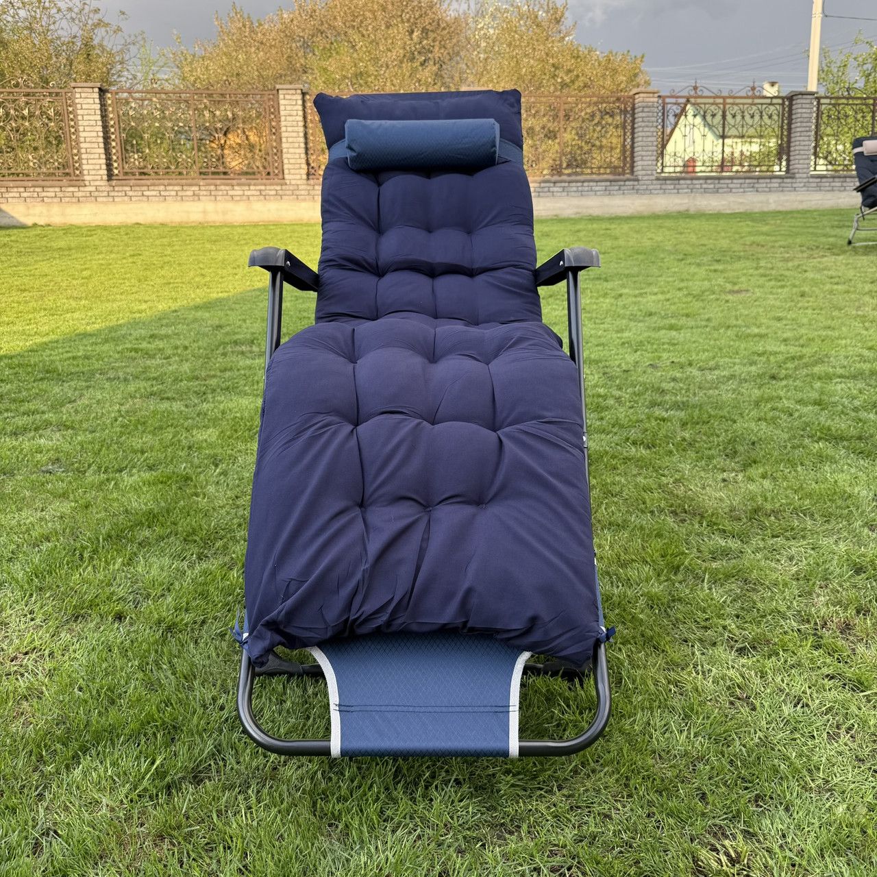 Садовый шезлонг тканевый + матрас IdealGarden CT-SF02-2408 Черно-синий