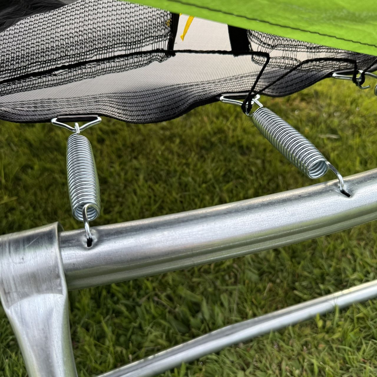 - Прочное полотно для прыжков - водонепроницаемый и быстросохнущий, крепится пружинами, допустимая нагрузка 120 кг.