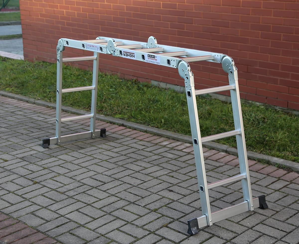 4-секционная универсальная алюминиевая шарнирная стремянка HIGHER может применяться в качестве как обычной приставной так и двусторонней стремянки. Удобная и практичная при строительных отделочных работах. Легкая в использовании и транспортировке. Благодаря тому, что стремянка сложная, ее легко можно поместить в багажник легкового автомобиля.