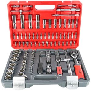 Качественный набор торцевых ключей отлично подойдет как для профессиональной мастерской, так и домашнего гаража. Набор состоит из 94 элементов разного размера, что позволит качественно выполнить многие мастер-классы. Торцевые ключи и торцевой привод изготовлены из прочной хромованадиевой инструментальной стали CR-V, благодаря чему они надолго сохранят свой первоначальный внешний вид. Набор позволяет работать с большими нагрузками и точностью, позволяет выполнять многие сервисные работы, связанные с откручиванием и закручиванием резьбовых соединений разных номинальных размеров.