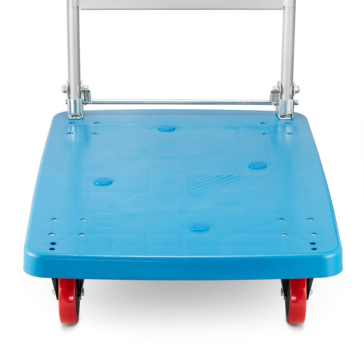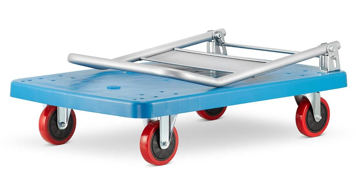 Складская тележка платформенная HIGHER®️, 4-колесная с грузоподъемностью до 300 кг, с полиуретановыми колесами диаметром 12,5 см (задние 2 колеса поворотные на 360°)