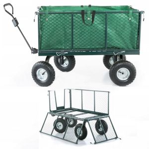 Практичная, универсальная... ее можно использовать как для игры, так и для работы в вашем саду и за его пределами. Представляем вам многофункциональную и универсальную большую садовую тележку, которая сочетает в себе три функции: тележку, прицеп и тачку. Изготовлен из прочных материалов (стальная конструкция) вместе с резиновыми надувными колесами дает общую прочность до 450 кг.