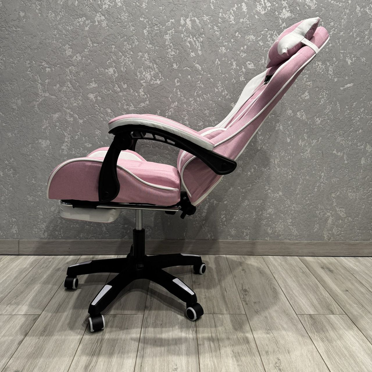 Представляем современное игровое кресло STRIKER KO40, идеально подходящее для любителей компьютерных игр, которые ценят комфорт и функциональность. Кресло оснащено рядом практических решений, обеспечивающих максимальный комфорт пользователям во время долгих часов, проведенных за компьютером. Кресло разработано в геймерском стиле, поэтому оно идеально впишется в дизайн геймерской комнаты. Мягкие колесики позволяют плавно передвигаться по полу без риска повредить его. В комплекте с креслом идут две подушки – для головы и поясницы, что придает комфорт. Кресло обито высококачественной тканью для долговечности и простоты чистки. Если вы ищете функциональное и стильное игровое кресло, гарантирующее комфорт во время длительных игровых сессий, то наш продукт оправдает ваши ожидания! Технические данные и параметры: Максимальная высота: 125 см Максимальная высота до сиденья: 48 см Минимальная высота до сиденья: 38 см Размеры сиденья: 52x49 см Размеры спинки: 52х80 см Общая ширина с подлокотниками: 61 см Глубина сиденья: 49 кг Цвет: розово-белый Материал: высококачественная обивочная ткань Плавная регулировка спинки с фиксирующим механизмом Прорезиненные колеса - не царапают пол Выдвижная подставка для ног Регулировка высоты, поворот на 360 градусов Две регулируемые подушки в комплекте По технологическим причинам размеры могут отличаться на 1-4%.
