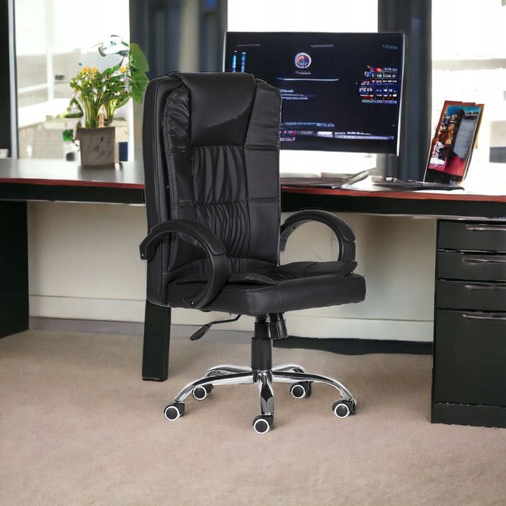 ОФИСНОЕ кресло SOFOTEL 004Кресло изготовлено из мягкой экокожи, которая придает креслу элегантность и престиж. Экокожа очень приятна на ощупь, ее легко чистить и ухаживать. Кресло имеет контурную спинку, которая поможет при длительной работе. Дополнительные функции, такие как регулировка высоты сидения и механизм покачивания, еще больше повышают комфорт. материал: эко кожа; крестовина: хром; колеса: резиновые; механизм: рычаг (бабочка); размеры (длина/ширина/высота): 60/65/123 см; регулировка высоты кресла: 111-121 см; максимальная нагрузка: до 120 кг; вес кресла: 16 кг; вес с упаковкой: 17,8 кг.