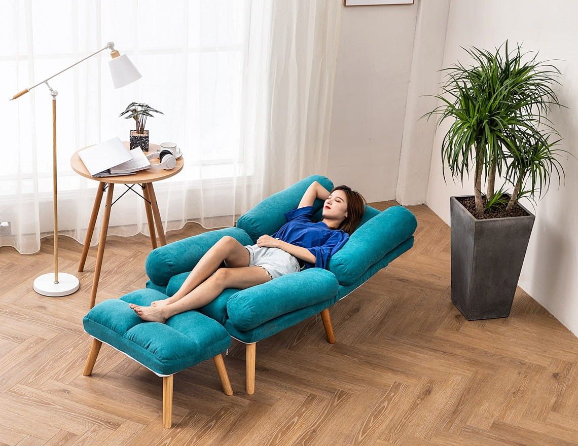Раскладное кресло отдыха Uszak DIOR с подставкой для ног | Светло-синий