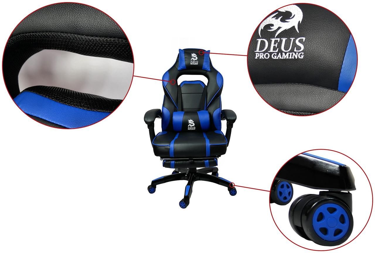 Крісла DEUS PRO GAMING - це спортивні сидіння найвищої якості з повністю регульованою спинкою і висувною підставкою для ніг. Характерною особливістю бренду є висока якість матеріалів, з яких виготовляються ці часто енергійно та довго використовувані крісла. Багато годин за грою на цьому кріслі – справжнє задоволення, а додаткові подушки, що підтримують голову та поперек, лише підсилюють відчуття високого комфорту.