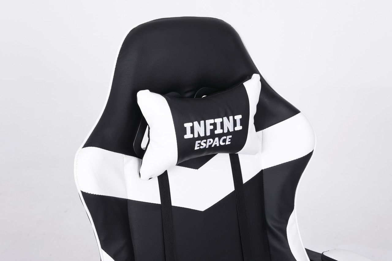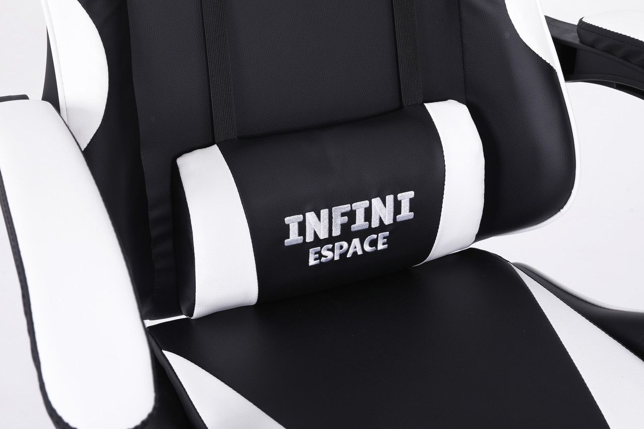 Ігрові крісла INFINI ESPACE — це комп'ютерні крісла з плавно регульованою спинкою та подушками. Бренд INFINI характеризується високою якістю матеріалів, які застосовуються для виробництва цих часто енергійно і довго використовуваних крісел. Грати годинами на цьому кріслі – справжнє задоволення, а додаткові подушки для підтримки голови та попереку лише підсилюють відчуття високого комфорту. Ідеально підходить для геймерів, а також для людей, які проводять багато годин за комп'ютером або письмовим столом.