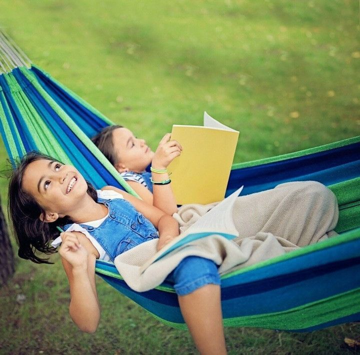 ➡️ Красиве поєднання синього та зеленого кольорів надає гамаку естетичного вигляду, роблячи його привабливим елементом декору