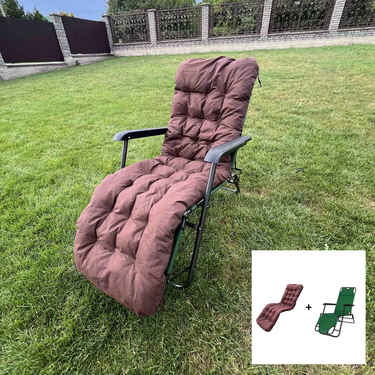 Садовий шезлонг тканинний з матрацом RahheGarden Linosa Зелений + Коричневий