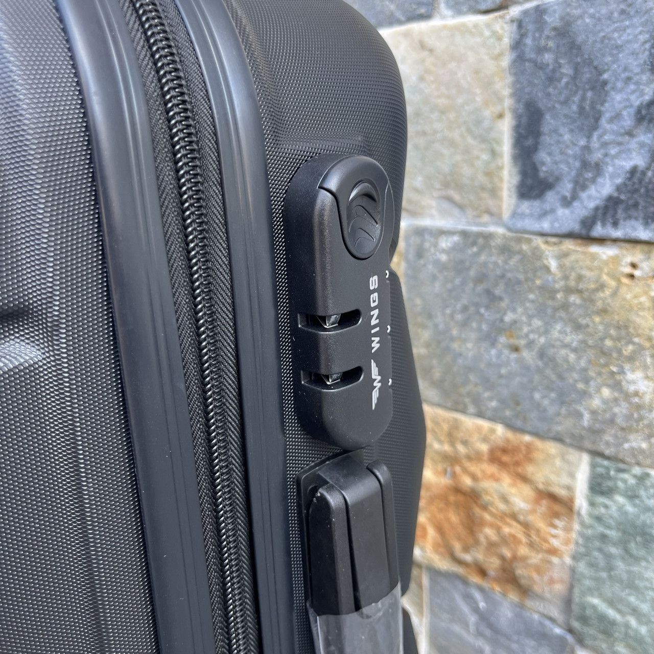 Розкішний чемодан від відомої компанії WINGS для найвимогливіших клієнтів. Сучасна і легка модель c дворівневою телескопічною ручкою виконана з міцного пластику ABS Plus зі стійкою до подряпин поверхнею. Зовнішні ручки валізи гумові та приємні на дотик. Кодовий замок запобігає проникненню небажаних гостей. У валізу вмонтована міцна дюралюмінієва рама. Кожна з валіз обладнана чотирма поворотними колесами, що забезпечують стабільність і легкість руху на будь-якій поверхні.