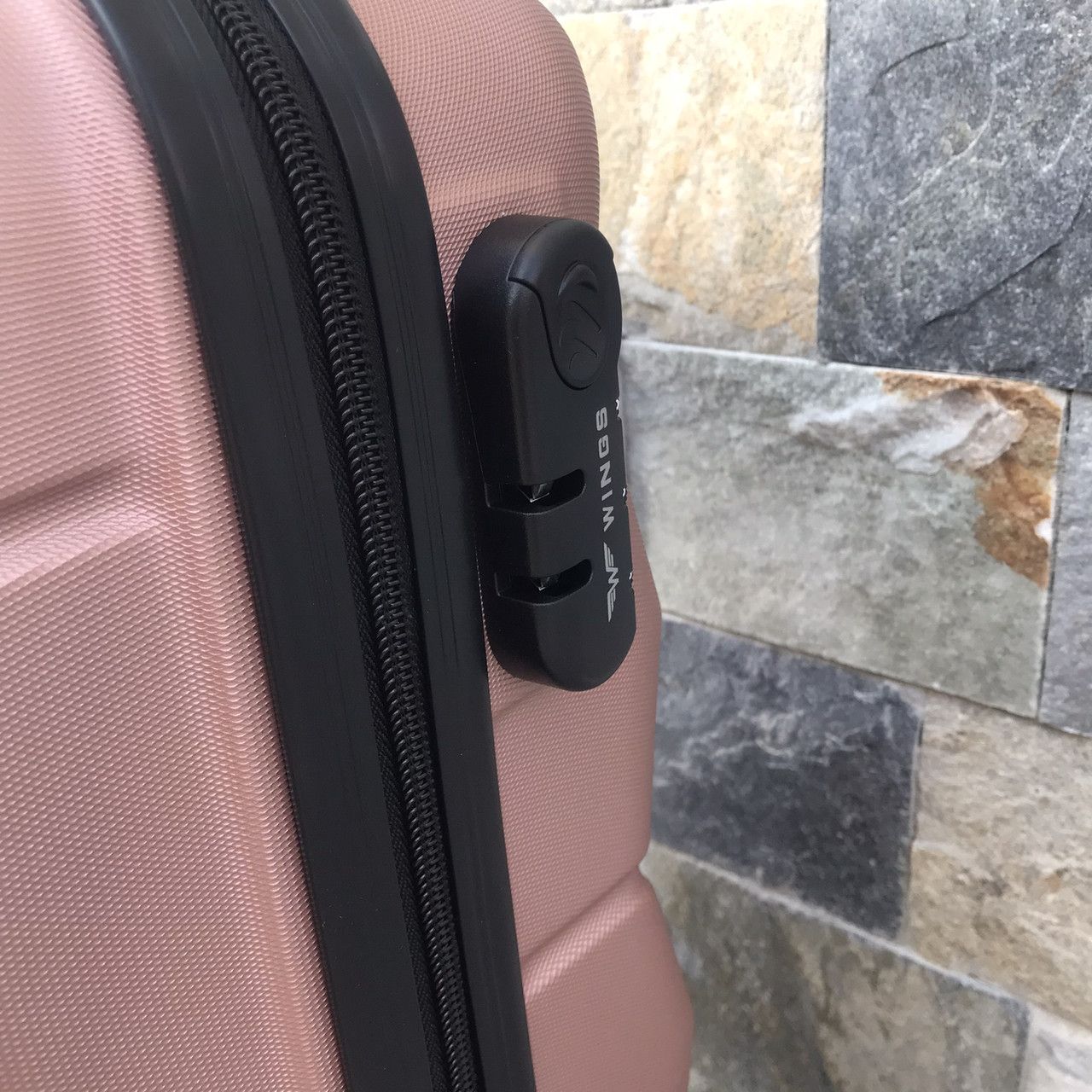 Розкішний чемодан від відомої компанії WINGS для найвимогливіших клієнтів. Сучасна і легка модель c дворівневою телескопічною ручкою виконана з міцного пластику ABS Plus зі стійкою до подряпин поверхнею. Зовнішні ручки валізи гумові та приємні на дотик. Кодовий замок запобігає проникненню небажаних гостей. У валізу вмонтована міцна дюралюмінієва рама. Кожна з валіз обладнана чотирма поворотними колесами, що забезпечують стабільність і легкість руху на будь-якій поверхні.