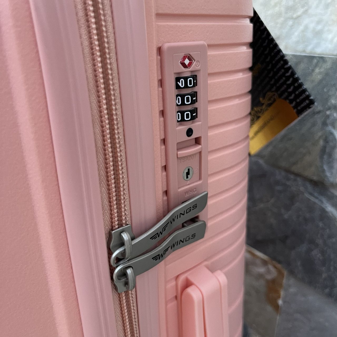 Валіза Wings DQ181-05 - це сучасний дизайн з продуманими деталями і кольорами в поєднанні з ергономікою використання. Валіза оснащена чотирма подвійними колесами і телескопічною ручкою, які гарантують вільний рух з нею у будь-якому напрямку і практично на будь-якій поверхні. Поліпропілен, з якого зроблена валіза, гарантує її довговічність, а кодовий замок TSA гарантує, що ваш багаж не потрапить в сторонні руки. З Wings ви завжди подорожуєте з елегантністю і комфортом - незалежно від місця призначення!