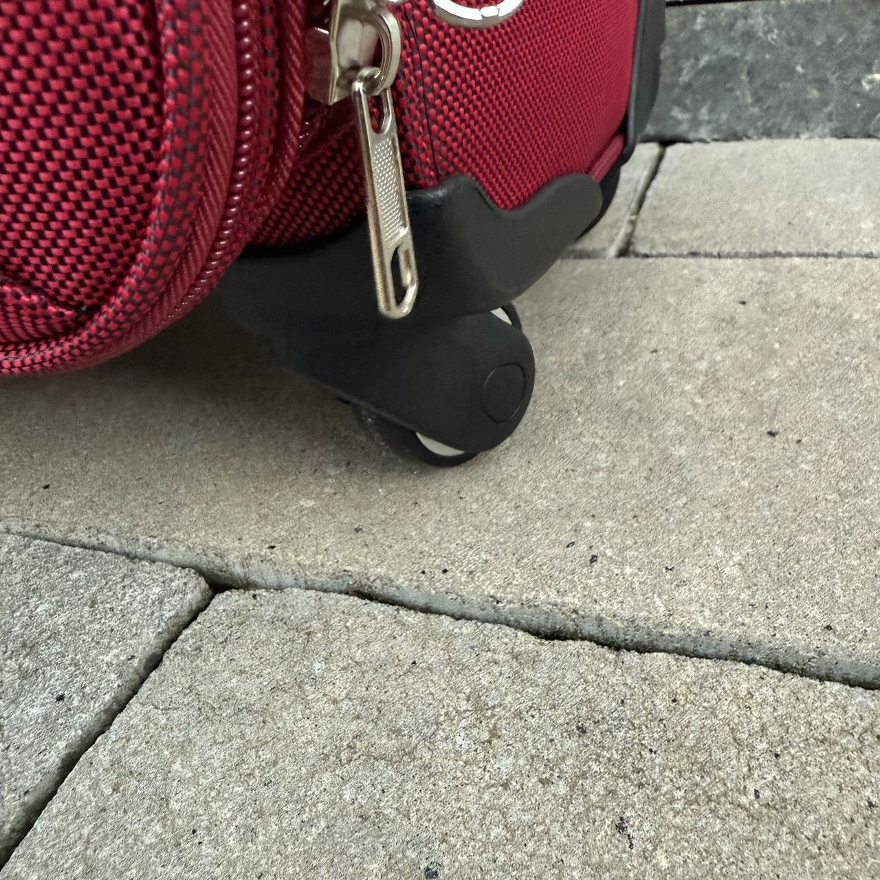 Валіза цієї моделі для надійності оснащена чотирьма великими міцними поліуретановими колесами на металевих підшипниках. Це дозволяє власнику пересувати валізу практично по будь-якій поверхні без ризику поломки коліс і без особливих зусиль.