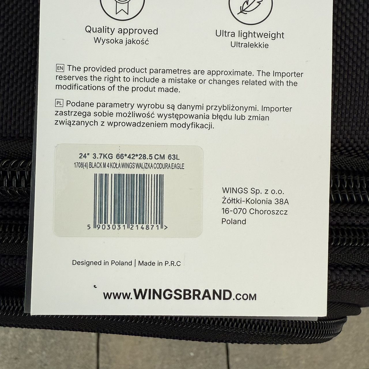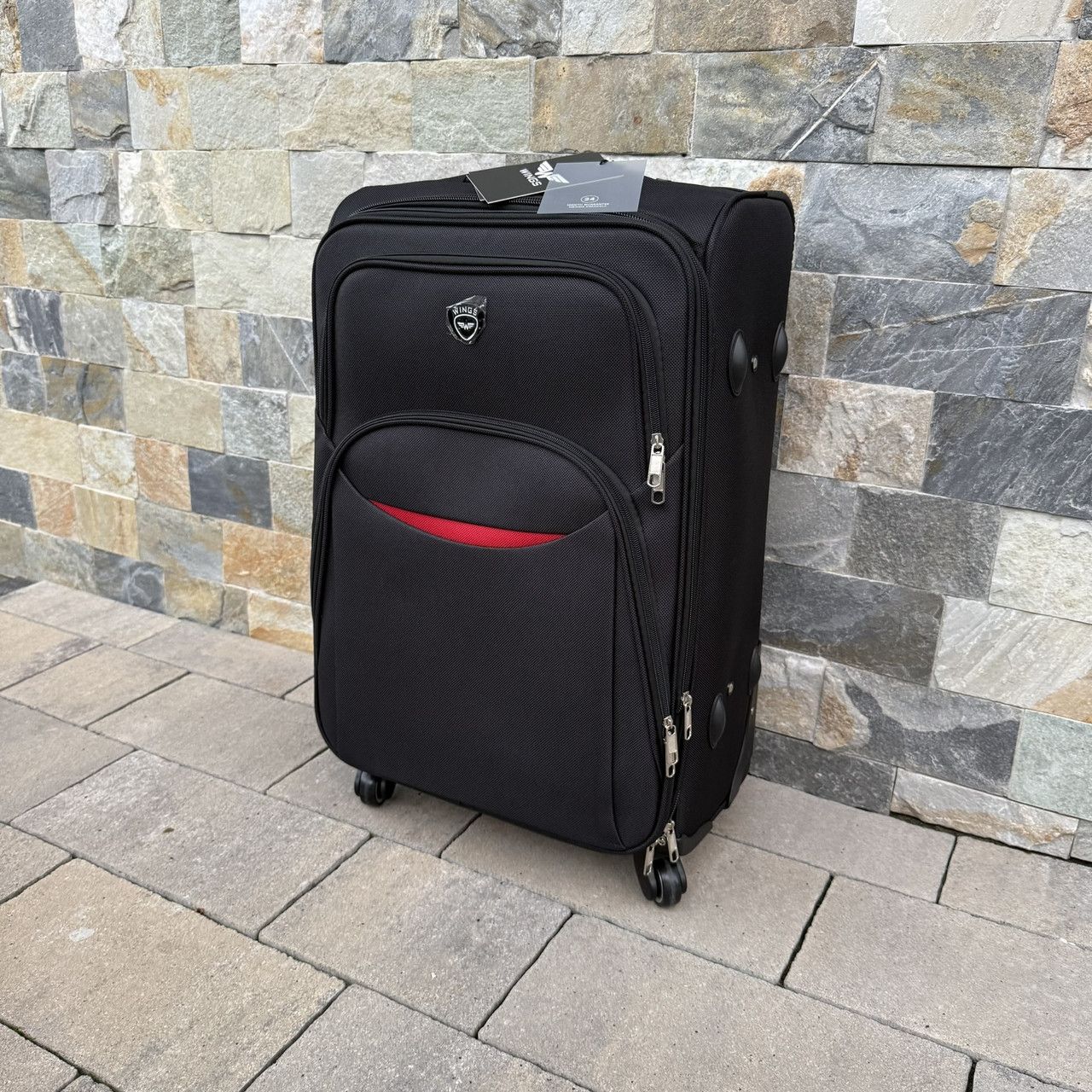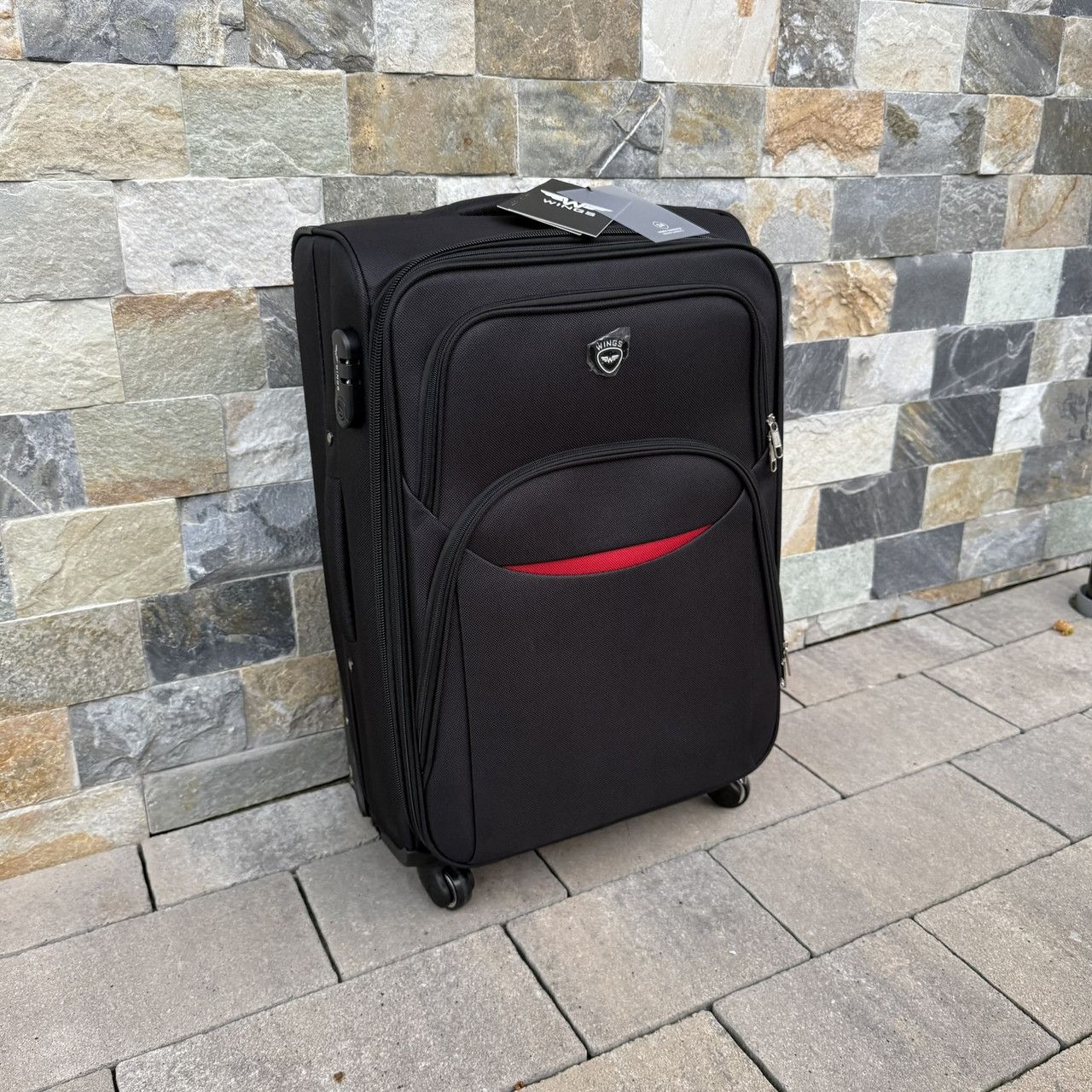 Тканинна валіза на чотирьох колесах Wings 1708 зроблена з надійного і міцного синтетичного тканинного матеріалу – поліестеру марки CODURA 1200D *. Цей матеріал легкий, еластичний, витривалий до пошкоджень та не промокає. Внутрішній каркас надає жорстку форму валізі – ви можете не боятися її навантажити.