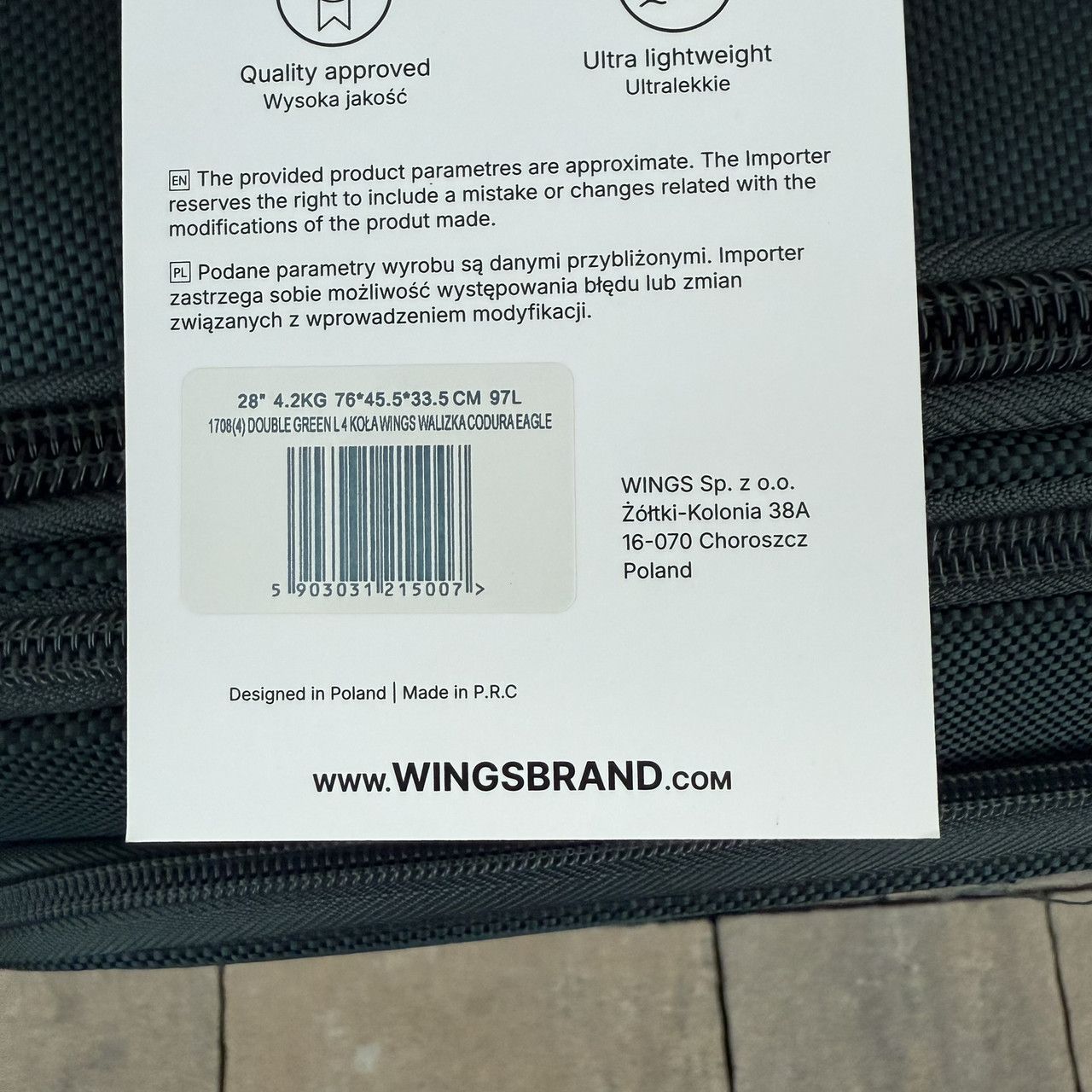 Тканинна валіза на чотирьох колесах Wings 1708 зроблена з надійного і міцного синтетичного тканинного матеріалу – поліестеру марки CODURA 1200D *. Цей матеріал легкий, еластичний, витривалий до пошкоджень та не промокає. Внутрішній каркас надає жорстку форму валізі – ви можете не боятися її навантажити.